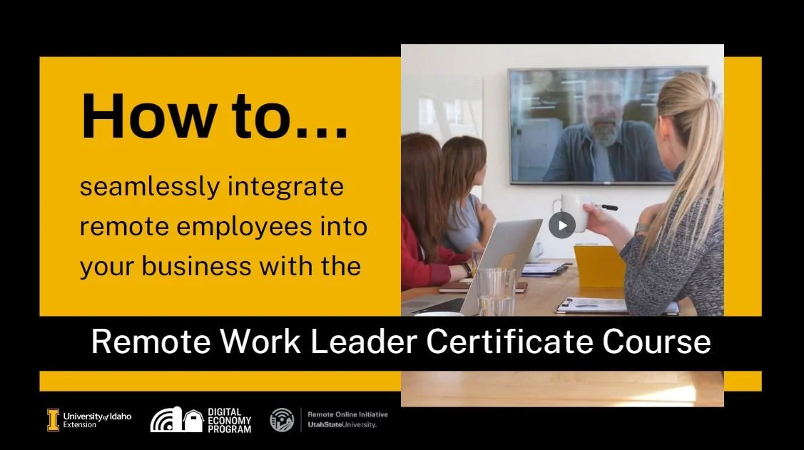 Idaho business owners and managers have a unique opportunity to master the art of managing remote teams and designing remote jobs in this comprehensive four-week course. Earn valuable Professional Development Credits that will help you upgrade your leadership in today's evolving business landscape. Courses offered bi-monthly. Enroll now and enhance your skills to tackle business challenges in the digital era with proficiency!